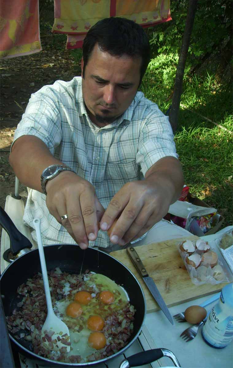 Die letzte Nacht im Zelt. Heute das letzte Mal am Strand. Auschecken am Campingplatz. Wir durften unser Zelt und alles noch stehen lassen – und kochten uns leckere Eierspeise zum Frühstück.