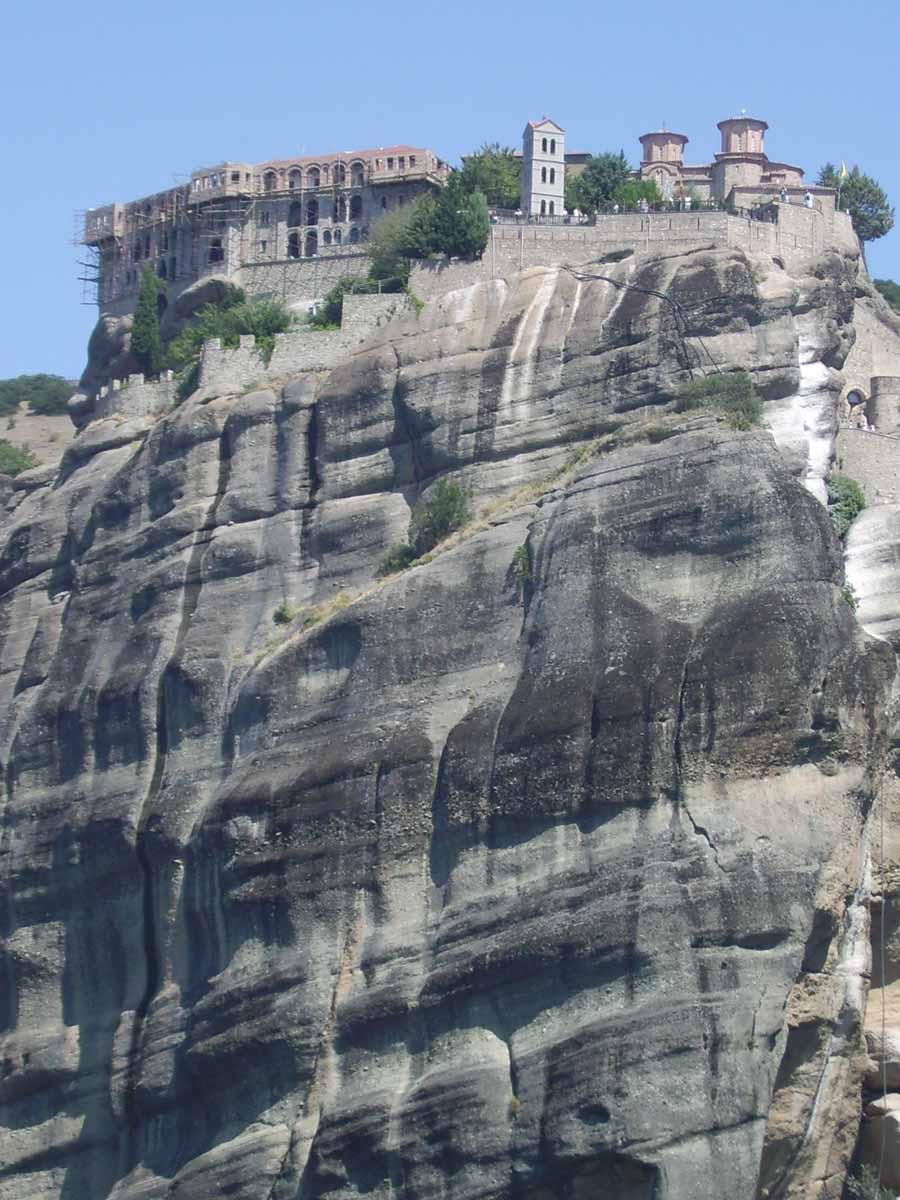 Heute machten wir uns endlich auf zu den berühmten Meteora-Klöstern. Diese 6 orthodoxen Klöster zeichnen sich neben den beeindrucken ikonenbestückten und –bemalten Kirchen vor allem dadurch aus, dass sie hoch oben auf steil aufragenden Felsen gebaut sind, fast wie ein i-Tüpfelchen auf einem hunderte Meter langem „I“.