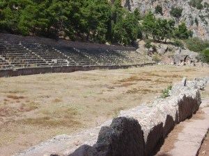 Die Ausgrabungsstätte liegt an einem Berghang, das beeindruckendeste war unserer Meinung nicht der Apollo-Tempel, sondern das wunderbar erhaltene antike Stadium, wo es noch die Sitzplätze zu sehen gab (im Gegensatz zu Olympia).