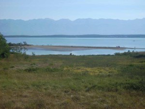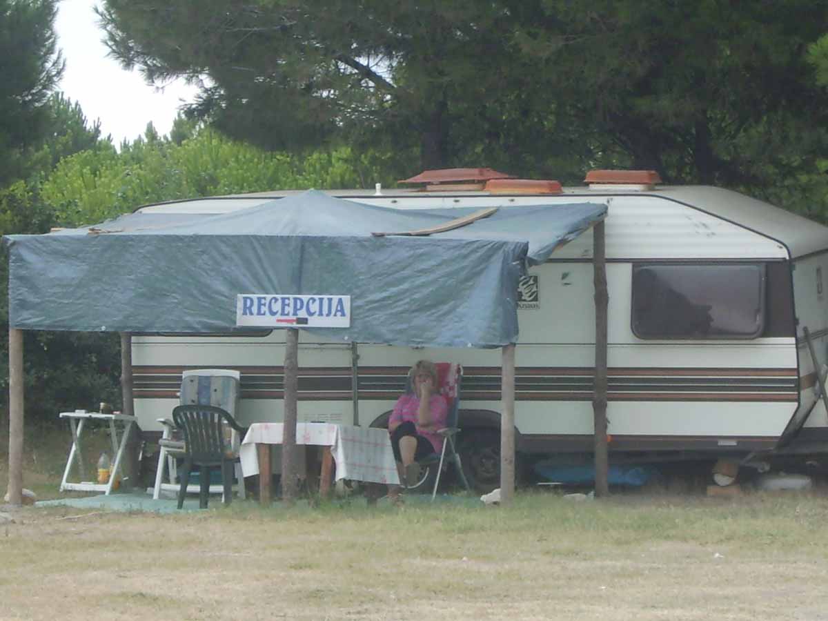 Das erste Mal in diesem Urlaub stellten wir das Zelt in Nin, Kroatien, auf (16.00 Uhr). Der Campingplatz liegt am Meer, man watet durch knöcheltiefes Wasser auf eine Sandbank und hat dort dann einen herlichen Strand.