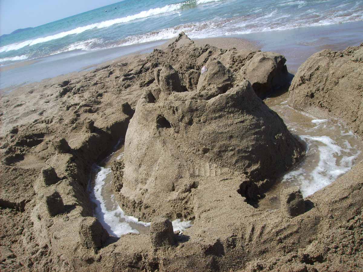 Der vorletzte Tag in Griechenland. Ein richtiger Strandtag. Wir bauten eine coole Sandburg, fluteten diese mit Meerwasser und fotografierten das Ganze natürlich ausgiebig, bevor sich das Wasser den Platz eroberte, an dem wir die Burg gebaut hatten.