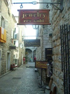 Am späten Nachmittag stauten wir uns wiederum durch Ulcinj, um nach Budva zu fahren. Diese Stadt ist ein gutes Beispiel für den überlaufenen Küsten-Tourismus Montenegros, Geschäft neben Geschäft, Stand neben Stand, Lokal neben Lokal, dazwischen erhascht man einen kurzen Blick aufs Meer… Die Altstadt, die sich innerhalb einer Mauer befindet, ist schön, millionenfach fotografiert, gibt aber nicht so viel her, wie wir vemutet hatten.
