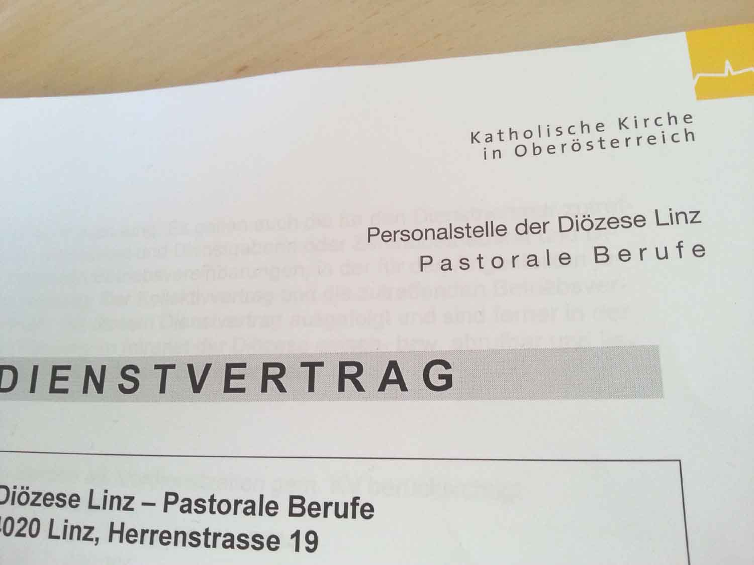 Ein bisschen Mut und Tapferkeit gehört schon zu jedem Neubeginn. Natürlich, ein Jahr lang konnte ich bereits Erfahrungen in hauptamtlicher pastoraler Tätigkeit sammeln. Aber nun beginnt ein unbefristetes Dienstverhältnis. Das bedeutet auch ein gewisses Vertrauen. Das Vertrauen der diözesanen Verantwortlichen, die mich „ins Rennen“ schicken. Das Vertrauen eines Freundes, des Pfarradministrators. Das Vertrauen des Pfarrgemeinderates, den ich bereits kennenlernen durfte. Schließlich auch mein eigenes Vertrauen in die neue (Lebens-)Aufgabe. Ich blicke sehr gelassen in diese doch auch ungewisse Zukunft. Sicherheit gibt mir das Vorschussvertrauen des Pfarrgemeinderates und des Pfarradministrators, vor allem aber geben mir meine sehr stabilen Beziehungen tiefen und festen Halt. Meine Frau, meine Familien, meine Freunde. Und die Beziehung zu dem, der in mir wohnt und durch den ich lebe.